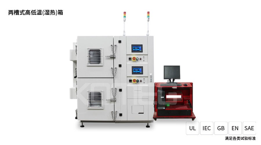 1.采用單機雙箱體設計,上下各一個測試箱體,兩個箱體的控制系統及冷凍系統完全獨立運行。